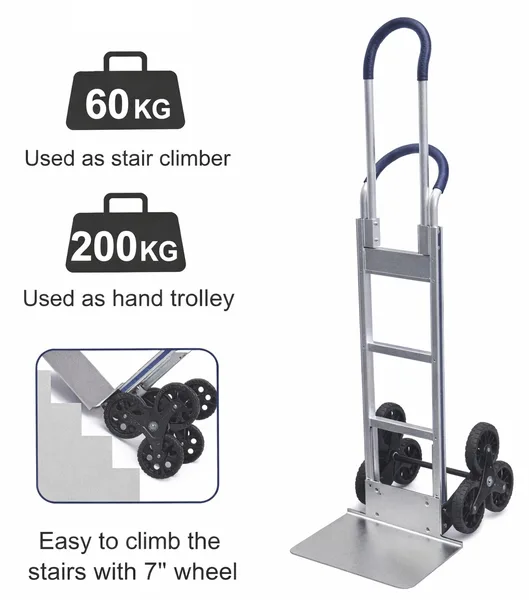 עגלת אלומיניום מקצועית חד מצבית גלגל משולש למדרגות כף 400X300 למשקל 200 ק"ג