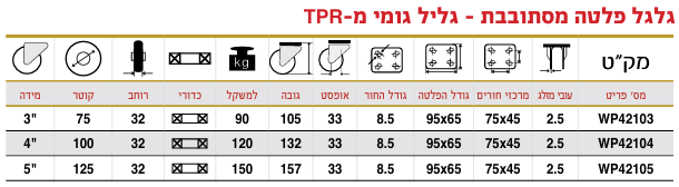 גלגל "5 פלטה מסתובבת גליל TPR מיסב אטום למשקל 150 ק"ג